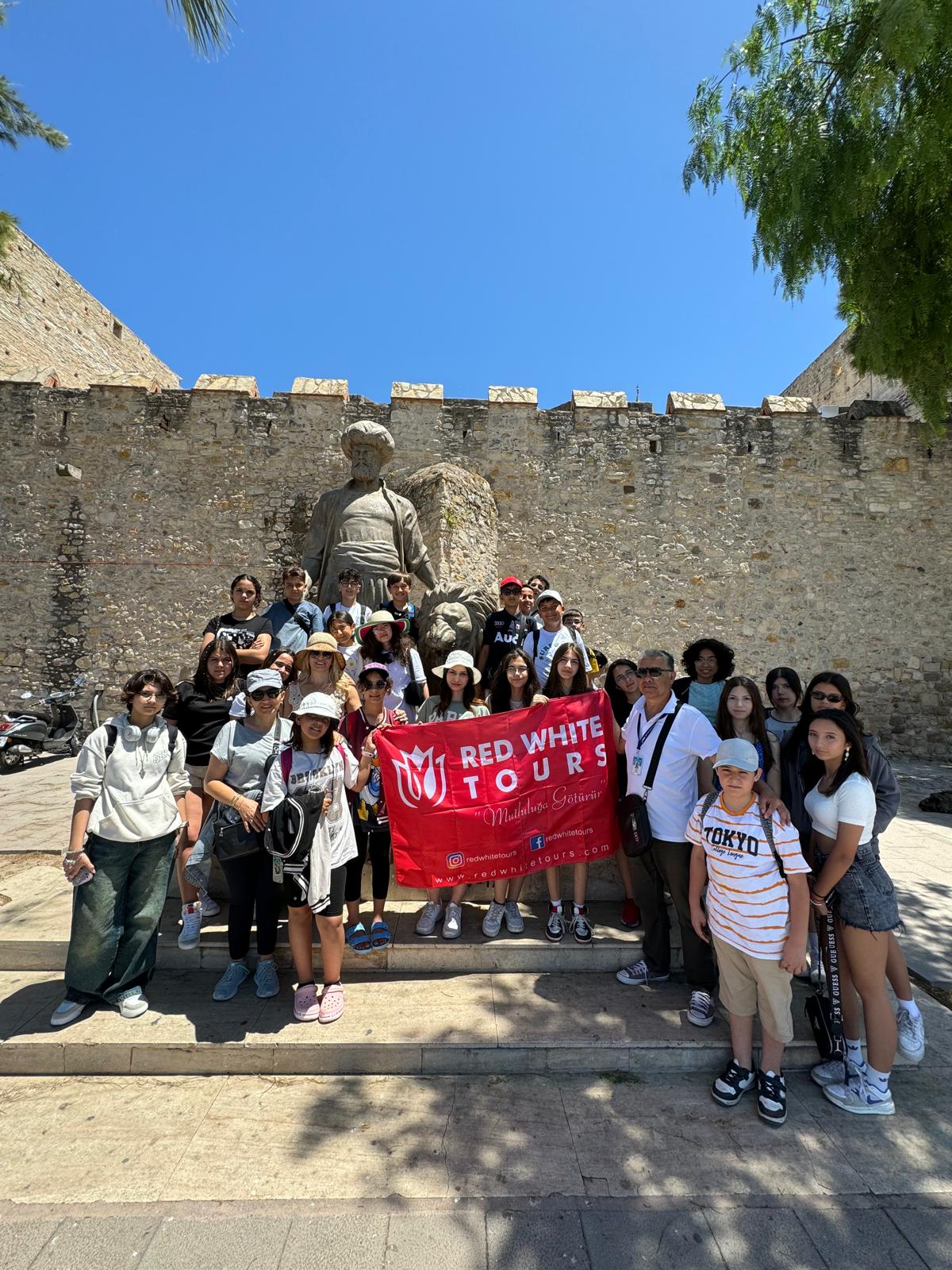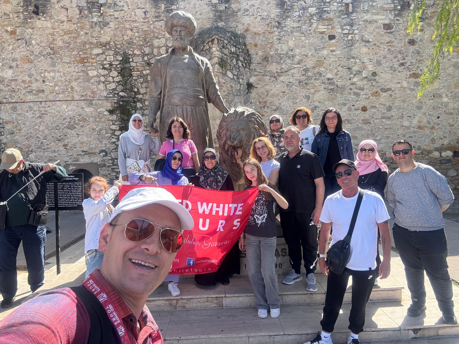 Çeşme Kalesi ve Cezayirli Hasan Paşa'yı rehberimizden dinliyoruz. ,Çeşme Sokaklarını geziyoruz.